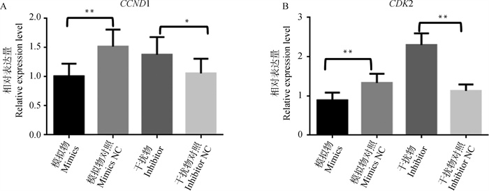 为探究miR-215-5p在雷州黑鸭组织中的表达规律,验证miR-215-5p对卵泡颗粒细胞增殖凋亡的调控,本研究分别选取体重与健康情况相似的43周龄产蛋期与51周龄休产期雷州黑鸭各3只,利用RT-qPCR检测了其不同组织中miR-215-5p的表达水平。通过构建模拟物和干扰片段载体转染卵泡颗粒细胞,结合CCK-8和流式细胞术等技术检测细胞增殖和凋亡,每组均包含了3个重复。结果显示,miR-215-5p在产蛋期雷州黑鸭的表达普遍高于休产期,其在卵巢、膨大部和胸腿肌肉中相对高表达,在漏斗部、子宫和心脏中相对低表达;CCK-8和EdU试验结果显示,miR-215-5p抑制卵泡颗粒细胞增殖;流式细胞术检测发现,miR-215-5p促进卵泡颗粒细胞凋亡;RT-qPCR检测增殖凋亡标志基因表达结果显示,转染miR-215-5p模拟物后,CCND1和CDK2表达量均极显著降低(P < 0.01),Caspase-3极显著上升(P<0.01);而转染miR-215-5p干扰片段后,CCND1显著上升(P < 0.05),CDK2极显著上升(P < 0.01),Caspase-3极显著降低(P < 0.01),TP63显著降低(P < 0.05)。雷州黑鸭miR-215-5p可以抑制卵泡颗粒细胞增殖,促进其凋亡。