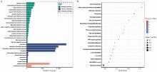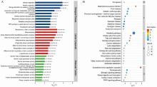 Results of GO functional and KEGG pathway enrichment analysis of DEGs A.GO functional enrichment analysis of DEGs: the x-axis represents the number of genes, and the y-axis represents GO categories; B.KEGG pathway enrichment analysis of DEGs: the x-axis represents the enrichment factor, and the y-axis represents pathways"