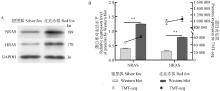 Results of NRAS and HRAS protein expression assays A.Western blot. B.Comparison of Western blot and proteomic analysis results: x-axis represents proteins, y-axis (left, bar chart) shows relative expression levels of NRAS and HRAS measured by Western blot, and y-axis (right, line graph) shows expression levels measured by proteomic analysis"