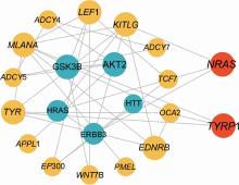 | GO: 0042438 | 黑色素生物合成过程 melanin biosynthetic process  |  0.002 04 | TYRP1、NRAS、EDNRB、TYR、MFSD12、CTNS、OPN3、OCA2、KITLG、TCF7、EP300、ADCY4、ADCY7、PMEL、LEF1、WNT7B、ADCY5 |