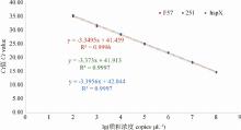 | 靶标 Target  |  标准拷贝数/(copies·μL-1) Concentration of standard plasmi  |  标准差 SD  |  平均值 Mean  |  变异系数 CV%  |