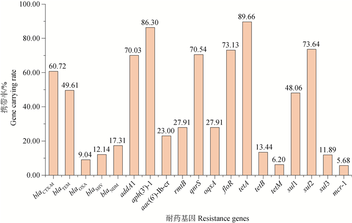 | blaTEM | 80.0%(4/5) | 49.2%(188/382) | 1.871 | >0.05 | ||