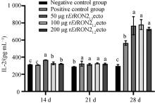 | 50 μg蛋白免疫组 50 μg rEtRON2L2ecto immune group | 29.7±1.5b | 31.0±1.9c |
