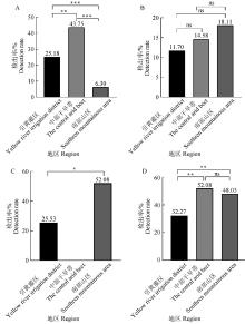 The statistical results of the detection rates of different pathogens in different regions A. M. bovis Detection rate statistics in different regions; B. Mh Detection rate statistics in different regions; C. K.pn Detection rate statistics in different regions; D. Pm Detection rate statistics in different regions"