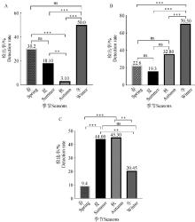 Statistical results of pathogen detection rates in different years in Ningxia region A. M. bovis statistical results of detection rates in different seasons; B. K.pn statistical results of detection rates in different seasons; C. Pm statistical results of detection rates in different seasons"